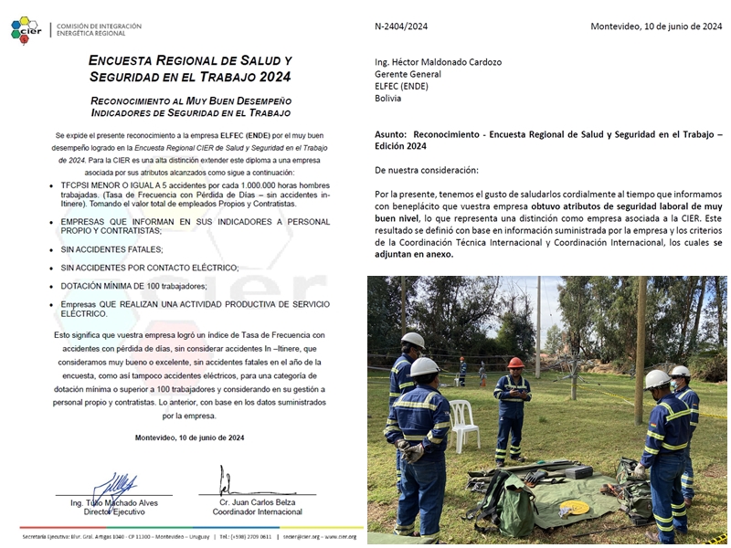 View Larger More Details ELFEC RECIBIÓ RECONOCIMIENTO DE LA CIER POR RESULTADOS DESTACADOS EN LA ENCUESTA REGIONAL DE SEGURIDAD Y SALUD EN EL TRABAJO - EDICIÓN 2024 2024/08/23